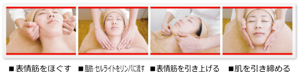 | “ヤマノ小顔”エステでは、筋肉に直接アプローチすることにより、小顔効果 |